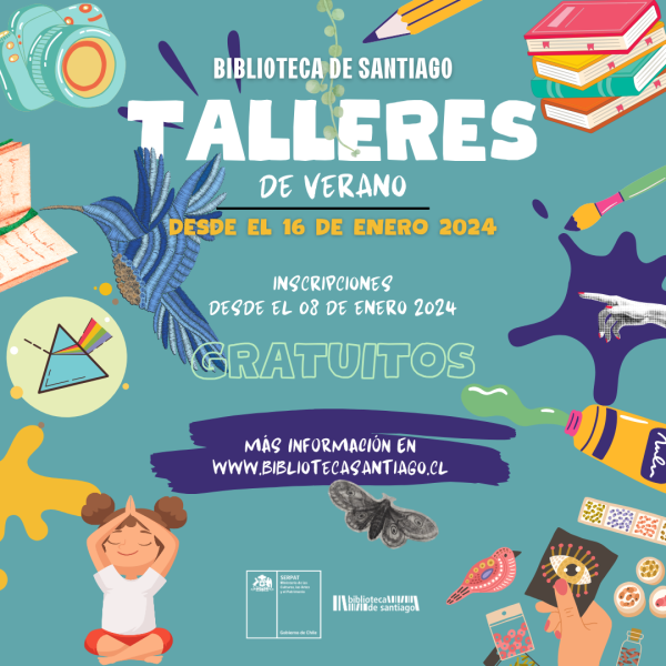 Inscripción de Talleres Gratuitos Artísticos y Culturales Verano 2024 (Cupos Limitados) desde el lunes 8 de enero en www.bibliotecasantiago.cl